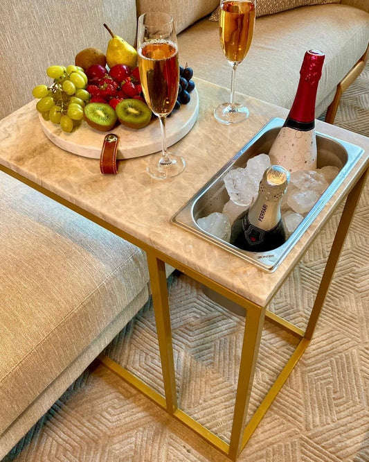 Mesa de Apoio e Luminária Quartzito Crystallus Gold