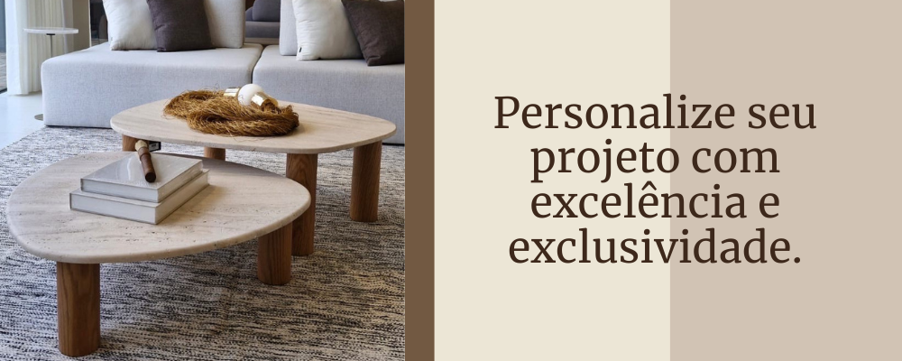 Mesa de Centro Trio Orgânico Mármore Travertino Romano