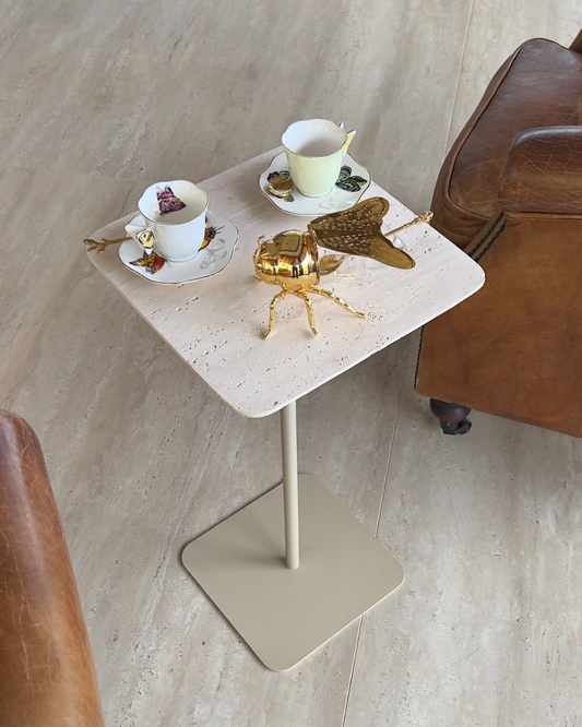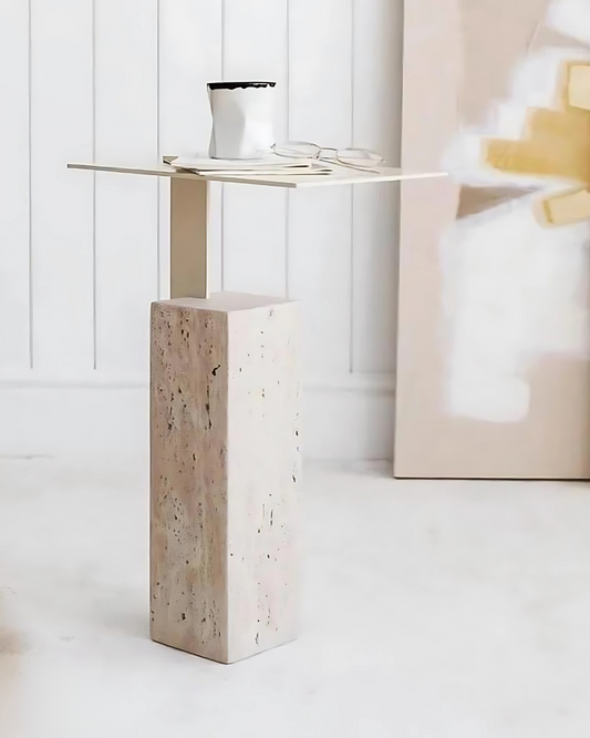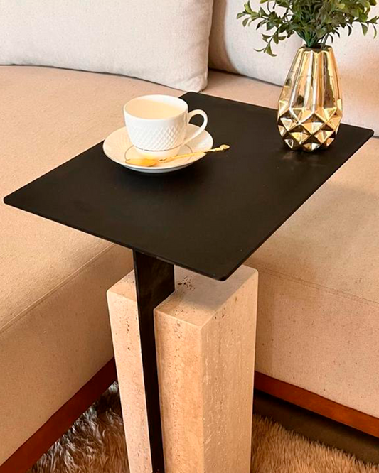 Mesa de Apoio Casal Quadratino Mármore Travertino Romano