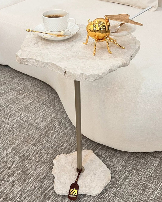 Mesa Orgânica Zera Mármore Travertino White Cream
