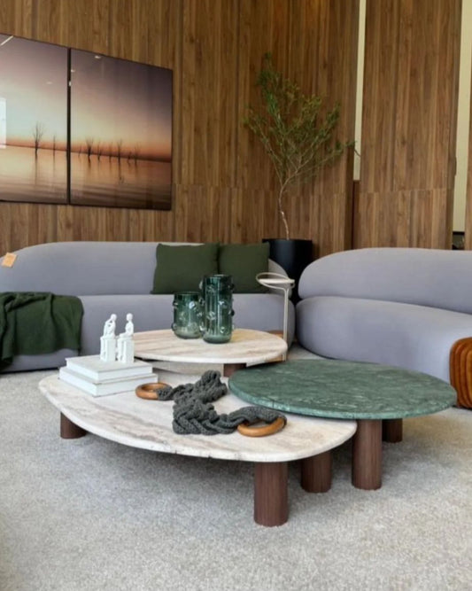 Mesa de Centro Trio Orgânico Misto - Mármore Travertino Romano e Verde Guatemala