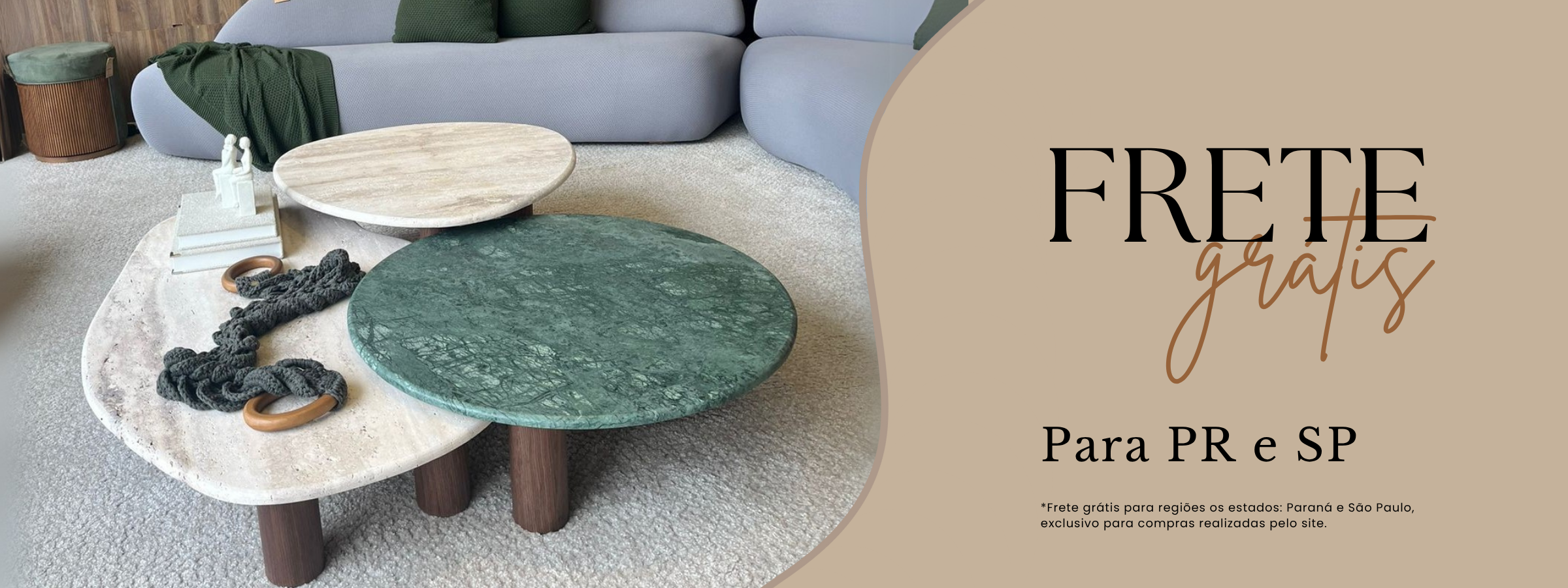 Mesa de Centro Trio Orgânico Misto - Mármore Travertino Romano e Verde Guatemala