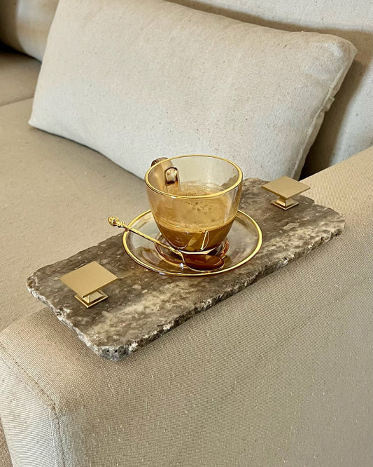 Bandeja Copa Café Mármore Travertino Romano Silver