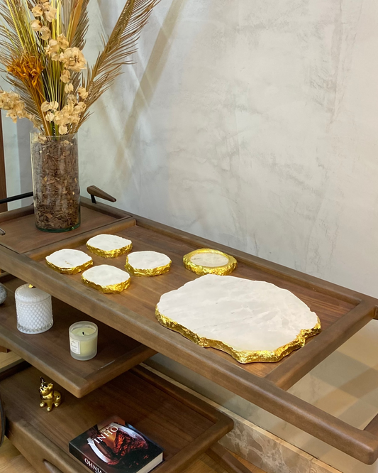Mesa de Apoio e Luminária Quartzito Crystallus Gold
