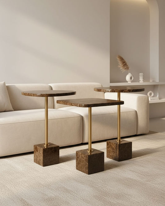 Mesa de Apoio Trio Imperador Mármore Marrom Imperador