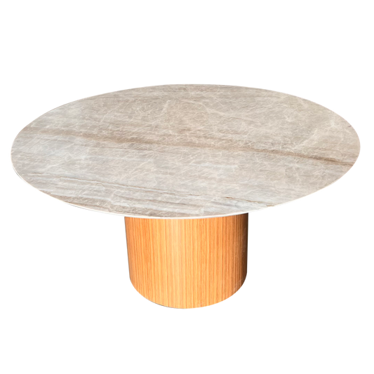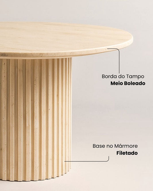 Mesa de Jantar Malbec Mármore Travertino Romano com Base Filetada
