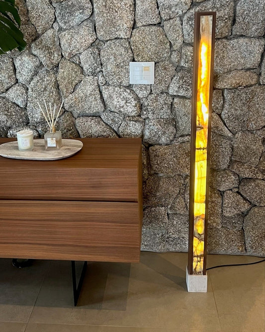 Mesa Luminária Ônix Paquistanês e Mármore Travertino Romano