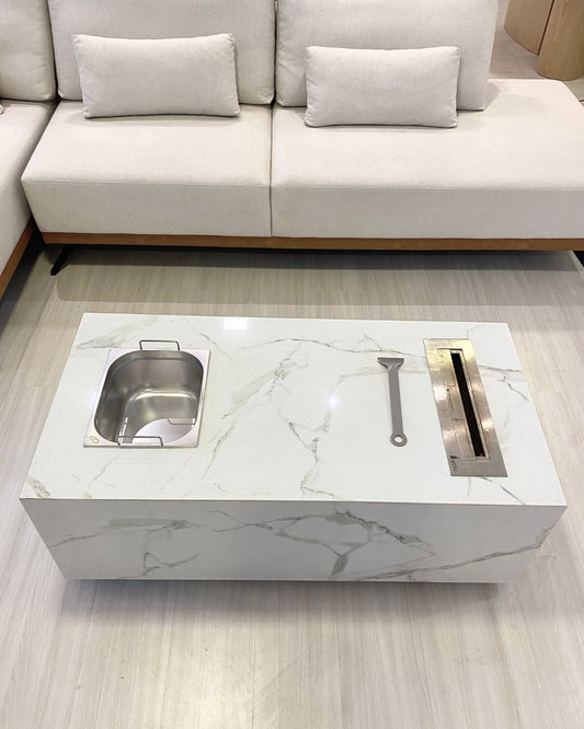 Mesa de Centro com Lareira Mármore Calacatta