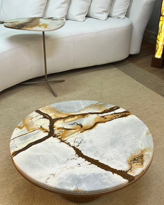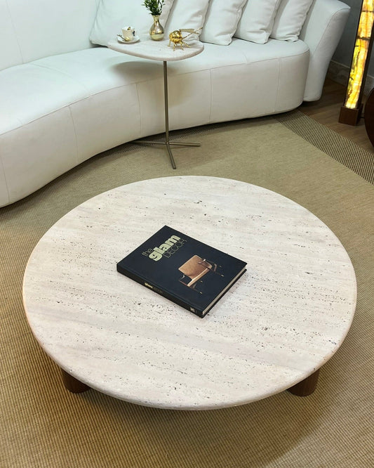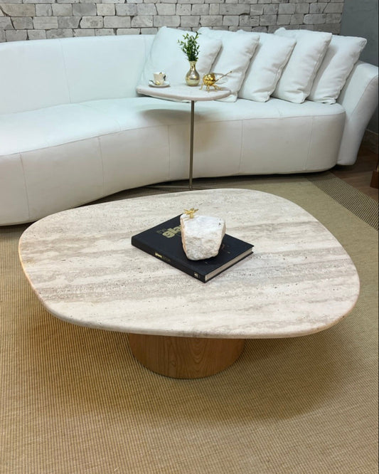 Mesa de Centro Concha Mármore Travertino Cappuccino