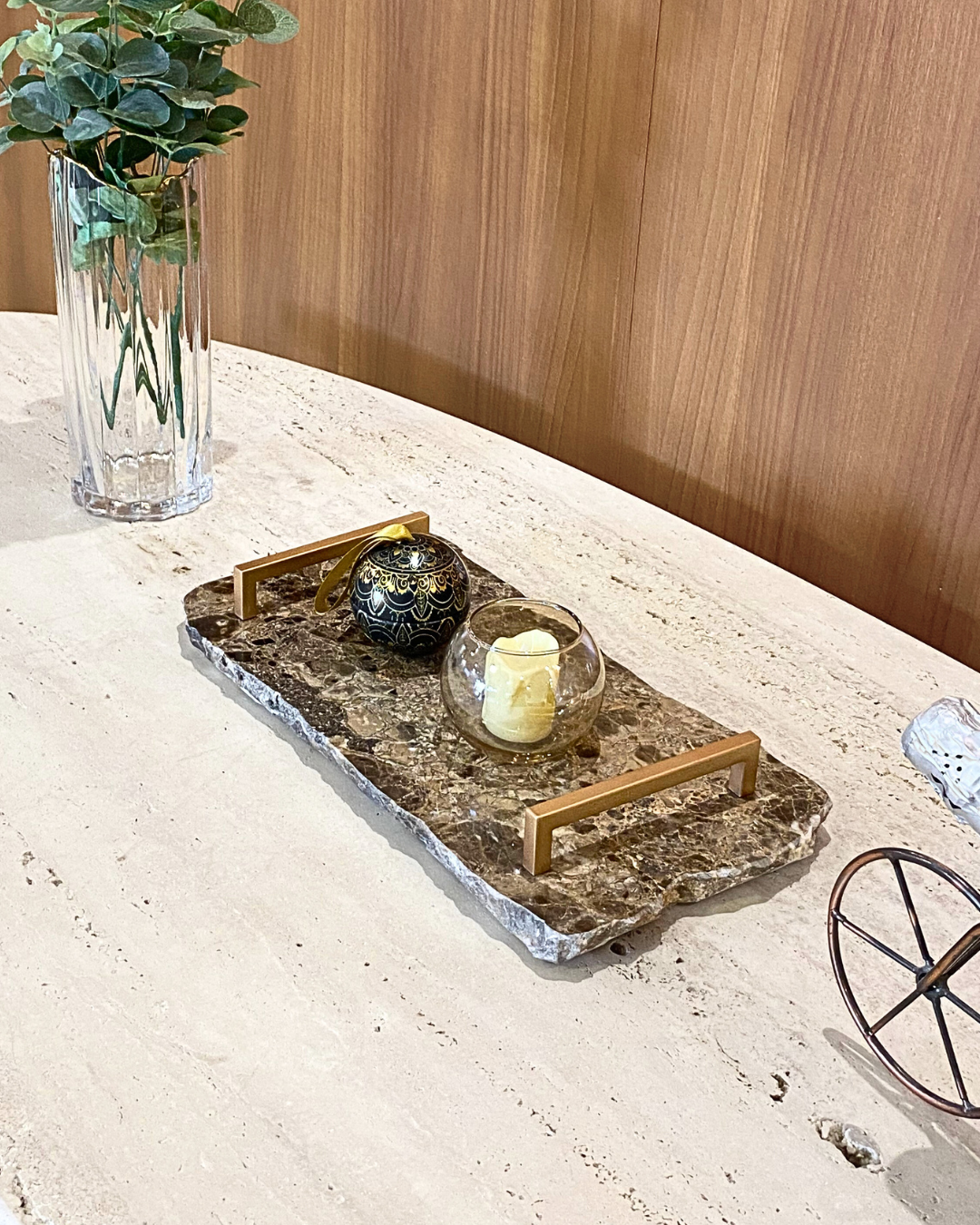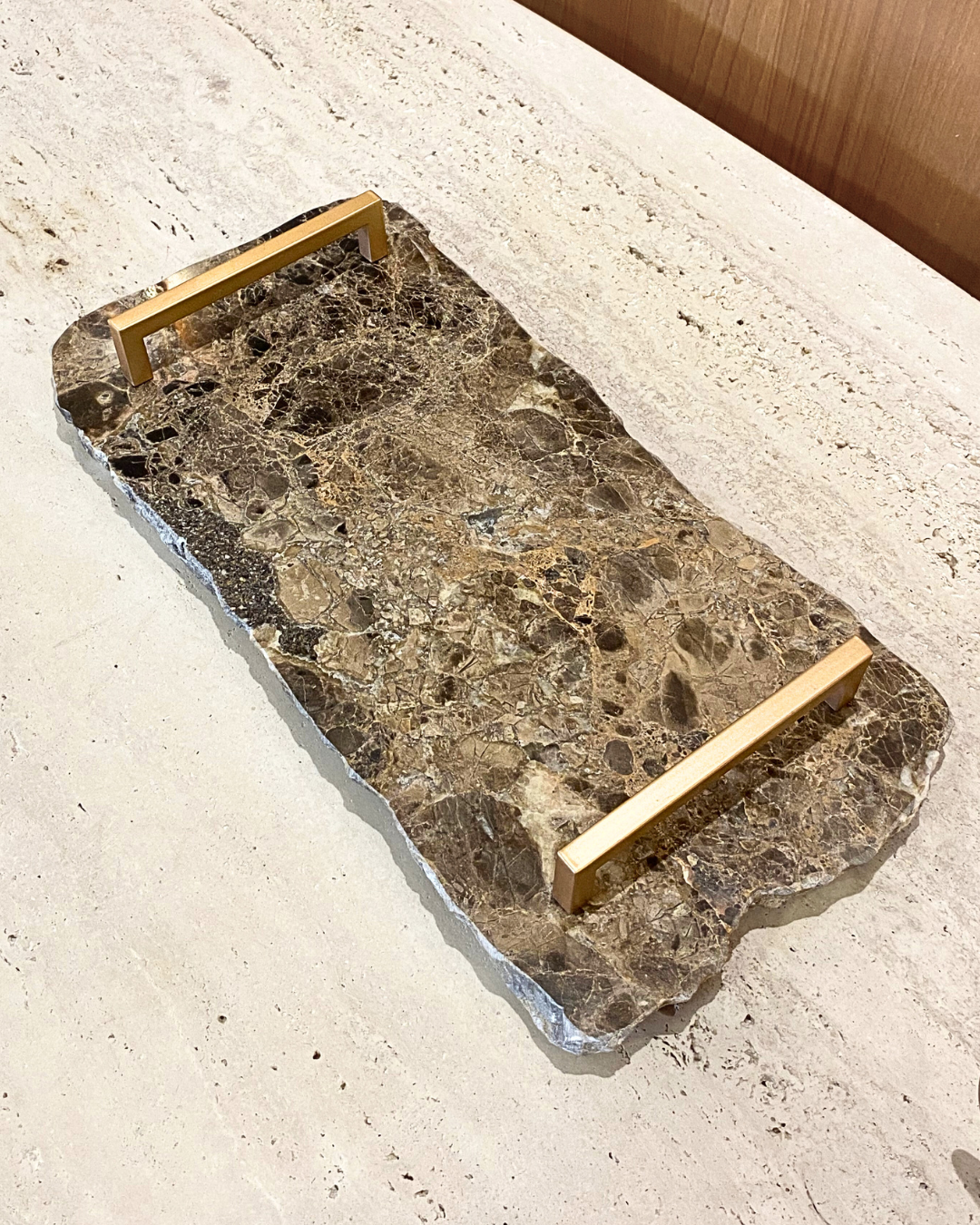 Bandeja Multifuncional Orgânica Mármore Marrom Imperador