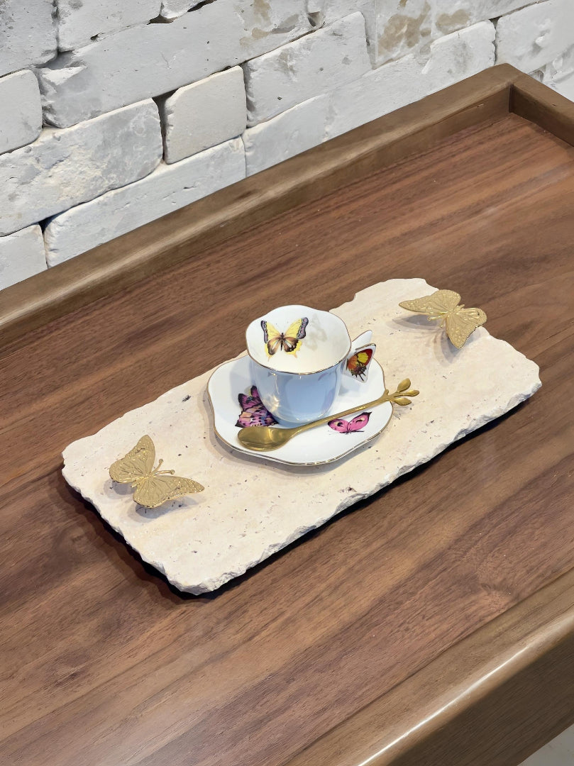 Com um design delicado e funcional, a bandeja da linha Borboleta encanta com seu pegador em formato de borboleta, trazendo leveza e sofisticação ao servir. Ideal para quem aprecia detalhes que fazem a diferença, ela combina perfeitamente elegante e praticidade em qualquer ocasião.