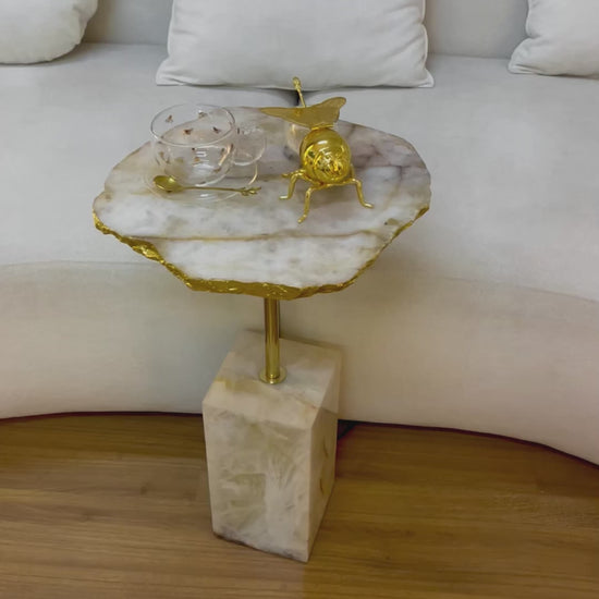 Mesa de Apoio e Luminária Quartzito Crystallus Gold