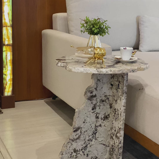 A mesa lateral da linha Fragmentos traduz exclusividade em cada recorte, com presença escultural, textura natural e um design que valoriza o essencial. Uma peça que não apenas compõe o ambiente, mas o define.