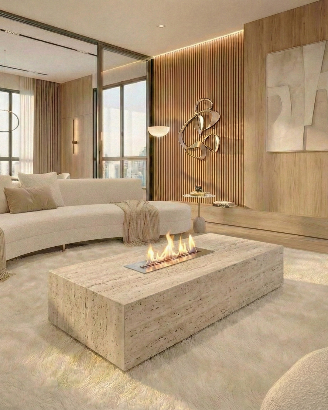 A Mesa de Centro Lareira combina funcionalidade com design sofisticado, enriquecendo o ambiente com calor e elegância.