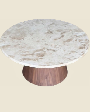 Mesa de Centro Malbec Mármore Travertino Cappuccino (Base Cone)