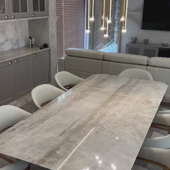 Formado ao longo de milhões de anos, o Quartzito Perla Santana é uma preciosidade 100% brasileira. Extraído de pedreiras nacionais, ele combina resistência extrema com uma elegância única, perfeito para projetos sofisticados e duradouros!
