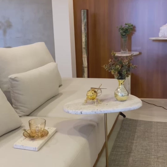 Mesa Lateral em Mármore Travertino Romano
