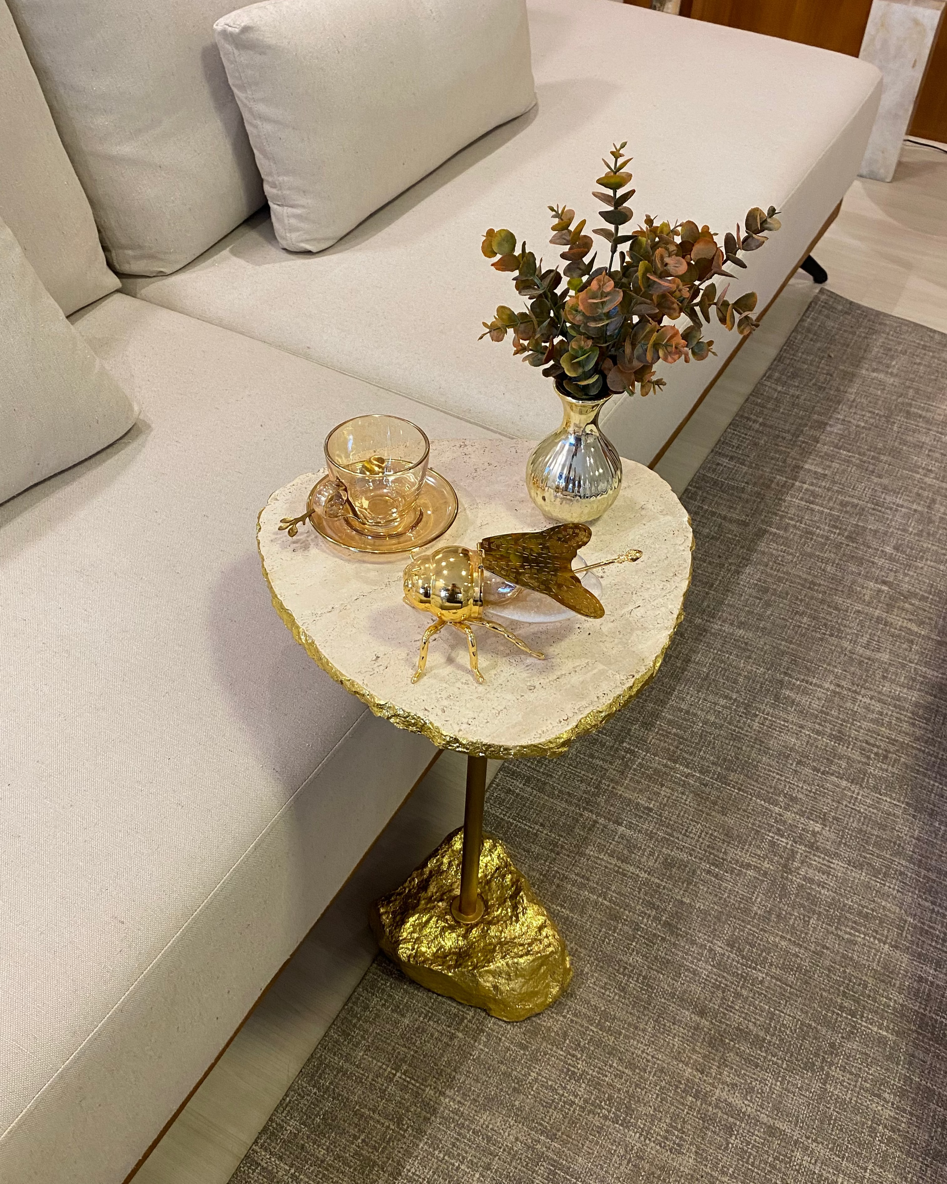 Inspirada nas formas naturais e imperfeitas da própria terra, a mesa la roca d'oro é uma peça escultural que une arte, design e funcionalidade. Cada curva e detalhe segue um desenho fluido, único e atemporal, como se tivesse sido moldada pela natureza ao longo dos anos.